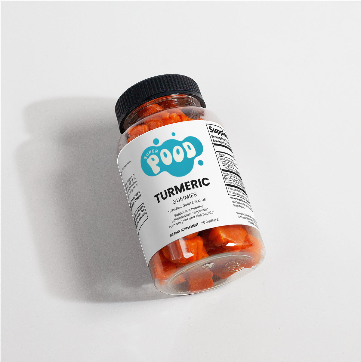 Ingredients: Sodium (as Sodium Citrate), Turmeric Extract (Curcuma longa L.)(root), Black Pepper Extract (Piper nigrum)(fruit), Turmeric Powder (Curcuma longa L.)(root), Glucose Syrup, Sugar, Glucose, Pectin, Citric Acid, Sodium citrate, Vegetable Oil, (contains Carnauba Wax), Ginger Flavor.